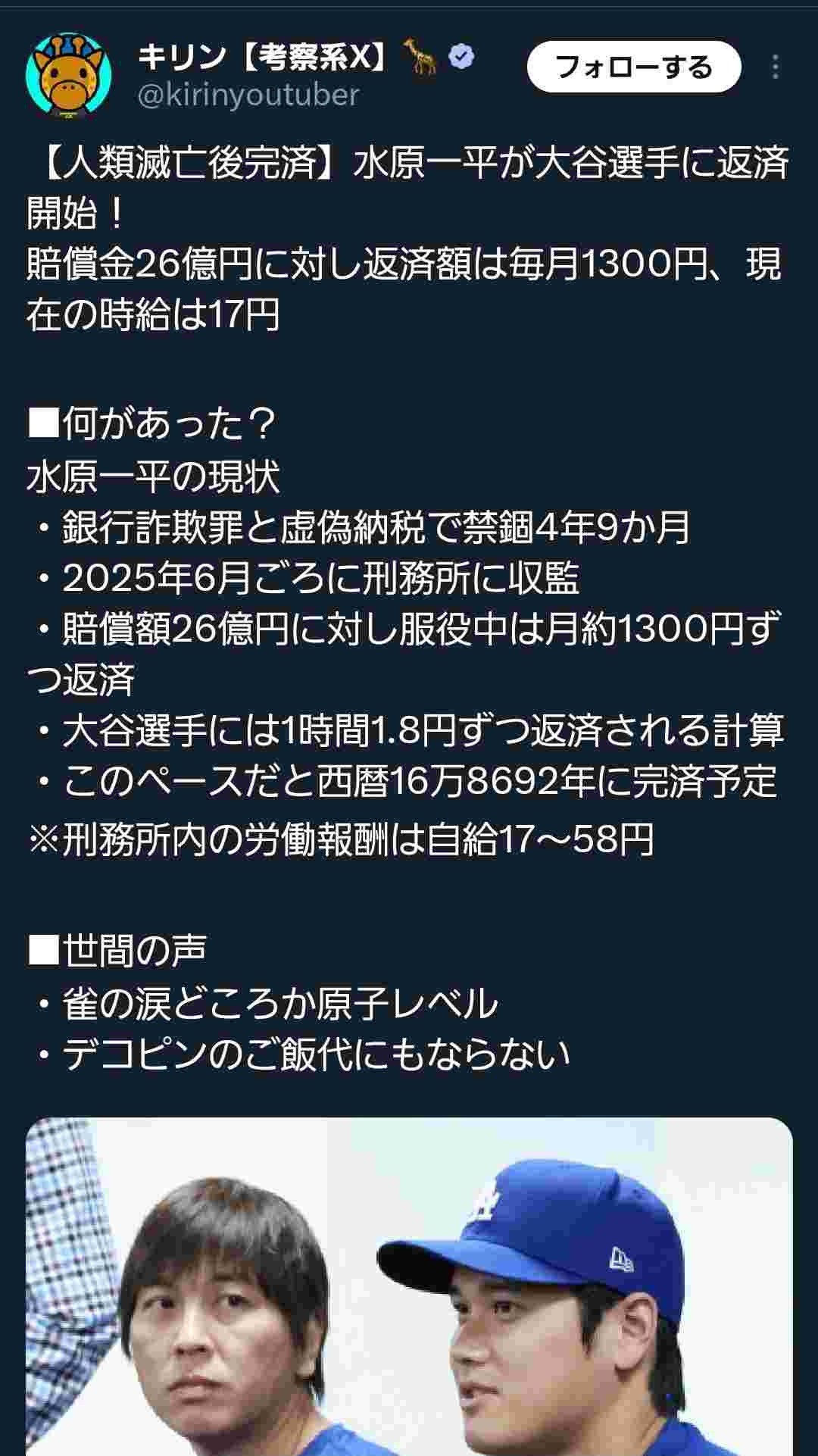 これもう大谷の恩赦待ちだろ