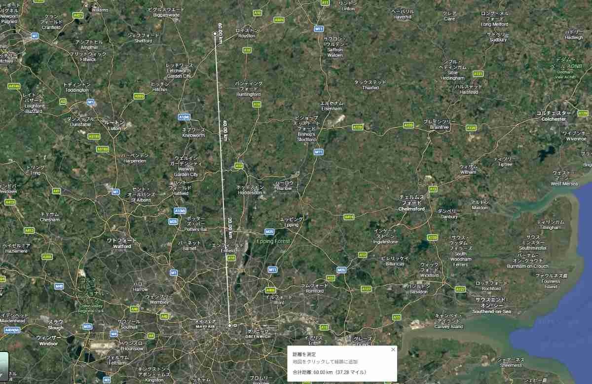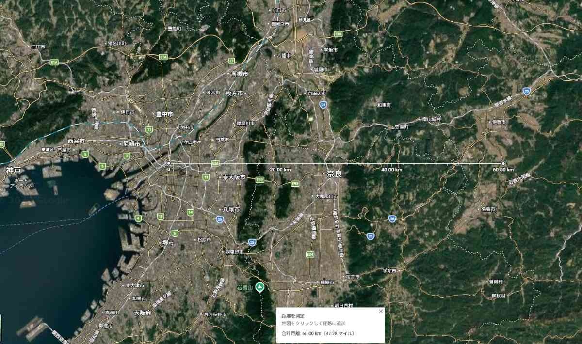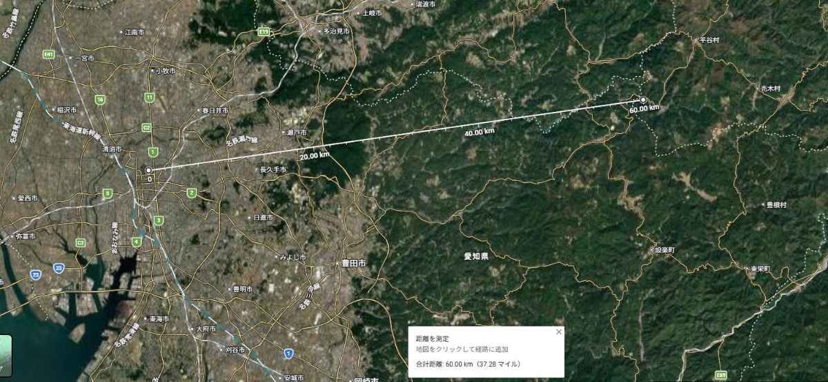 つまり直線で120kmが1つの街