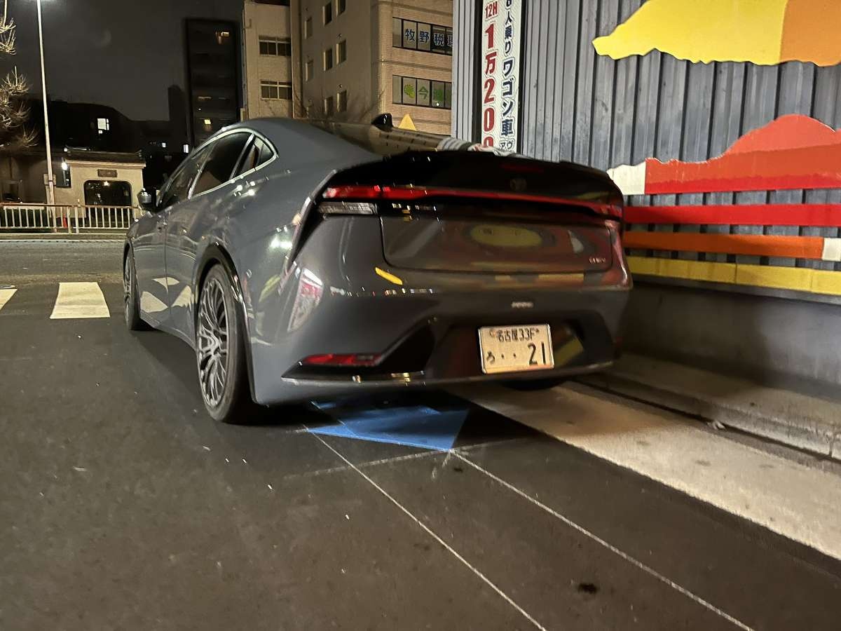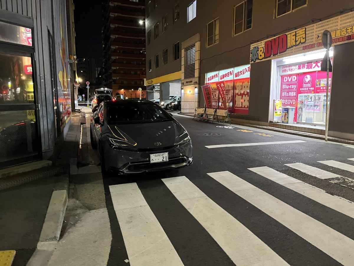 なんなら交差点の角から停め始めるし