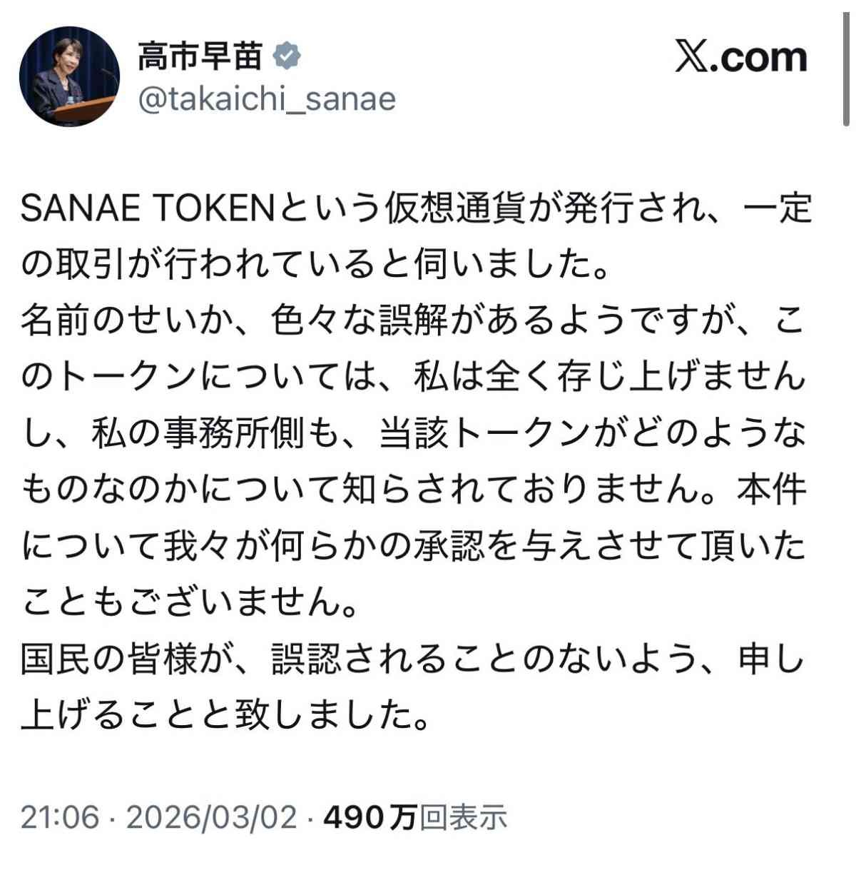 サナエ「SANAE TOKEN私は全く存じ上げません」