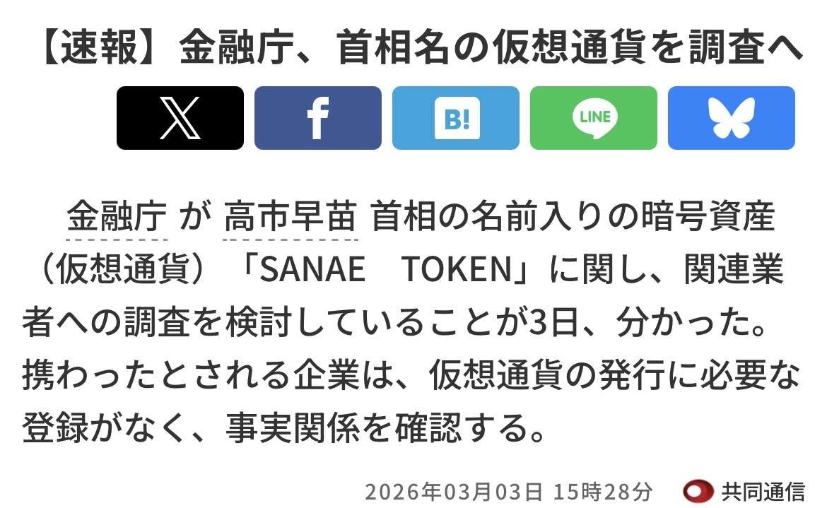 サナエトークンとかいう露骨な名前にされたのは非常に不本意だったろ