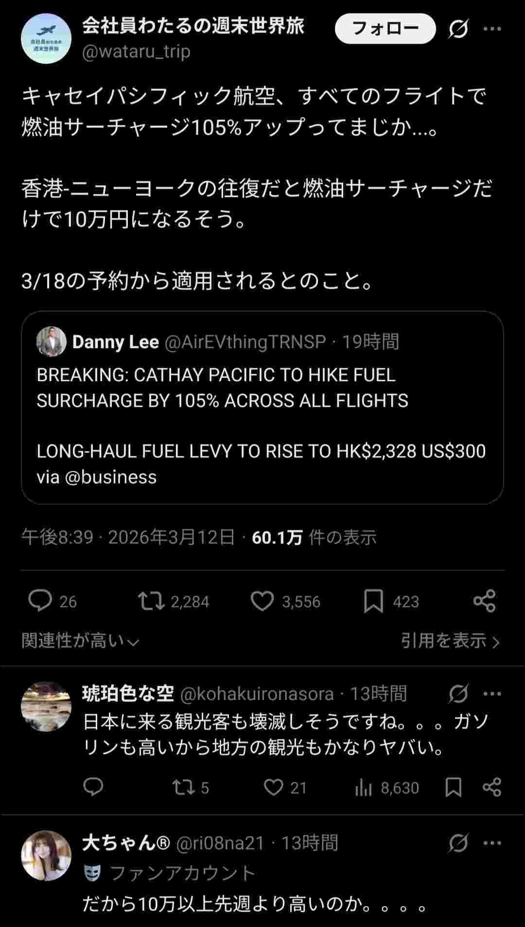 香港ーニューヨークとかならサーチャージだけだしまだいいけど今まで欧州アフリカオセアニアアジアあたりの大きなハブだった中東がダメだと迂回路線はさらにめちゃ上がる