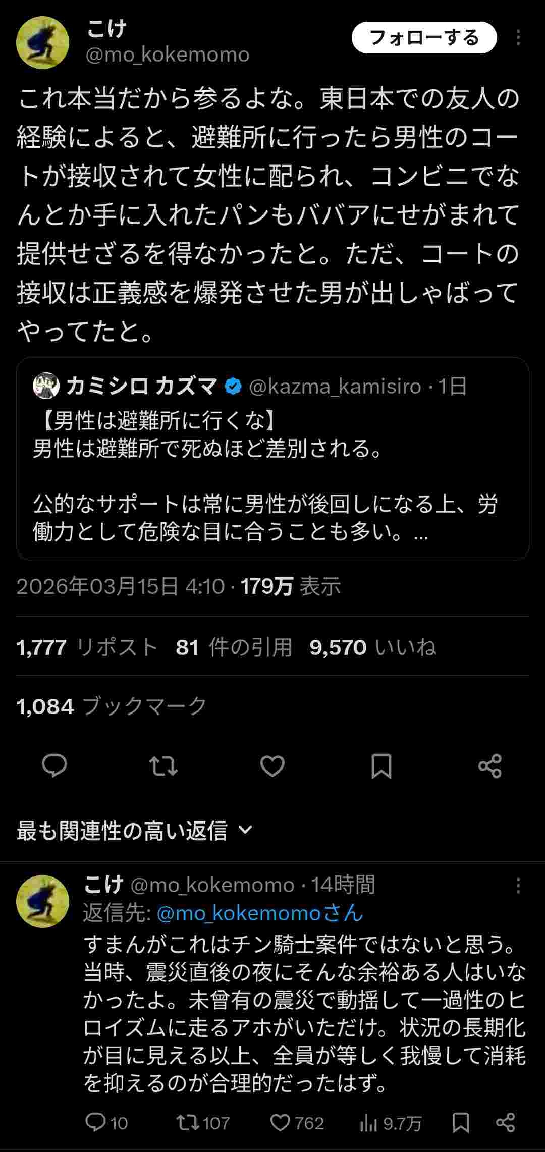 ぶっちゃけあそこまでの震災起きたら他人のこと考えてる暇なんてないよな