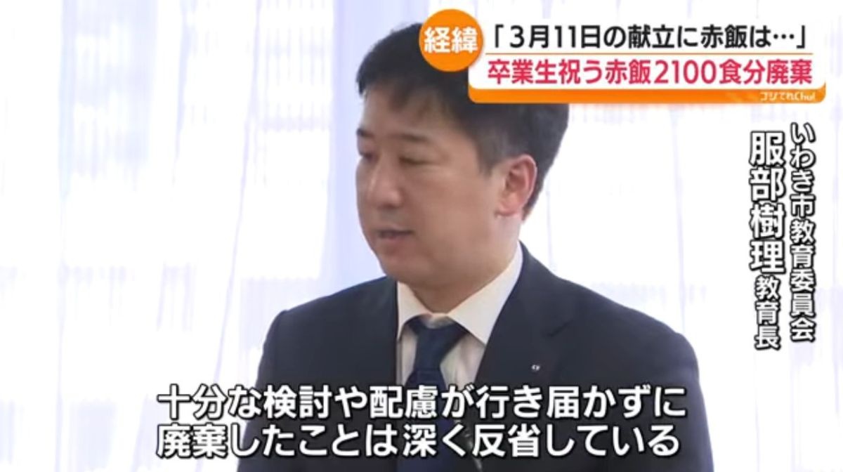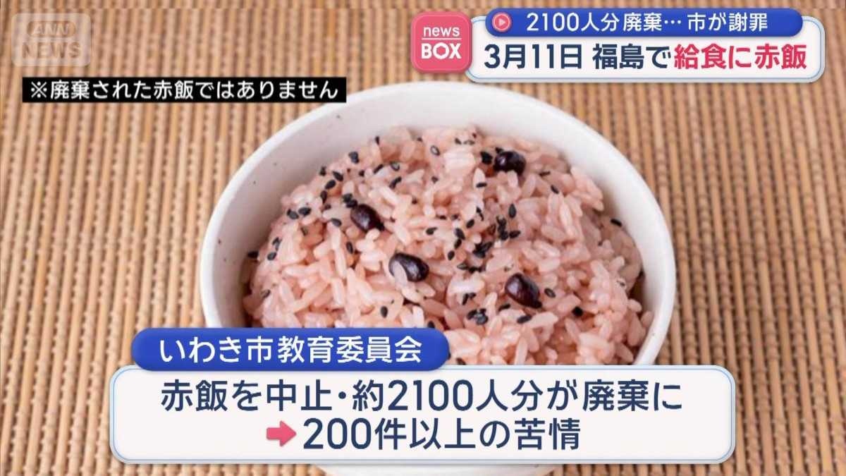福島県いわき市、震災の日に赤飯を出すなと言うクレーマーに屈して赤飯を廃棄して大炎上