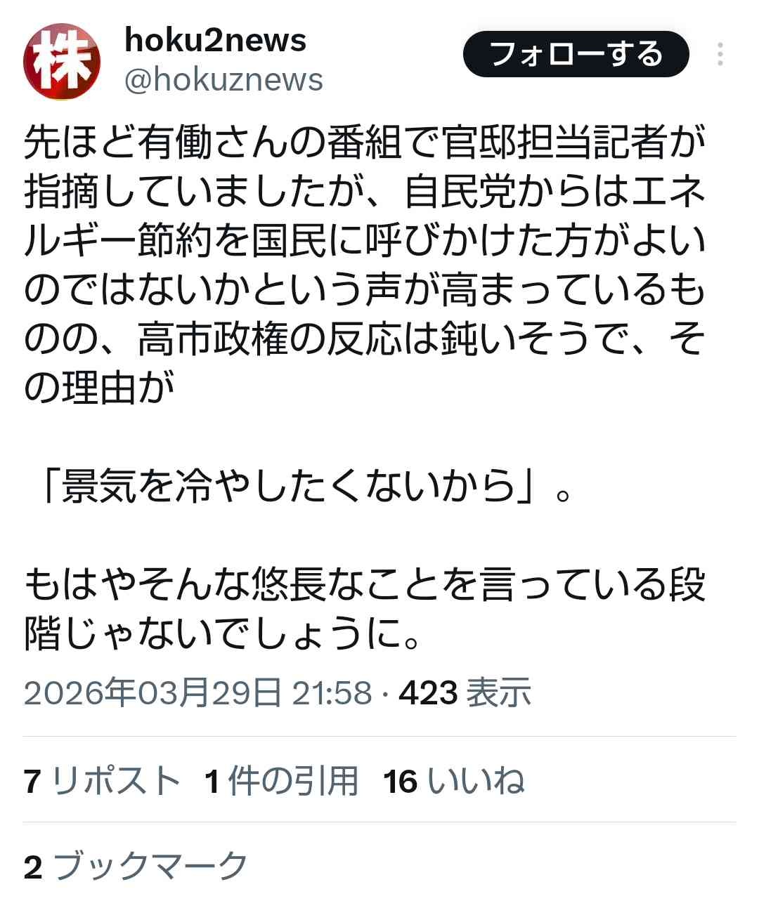 エネルギー危機を煽って自衛隊派兵に比べるとマシな理由に見えてしまうくらいヤバい状況やな