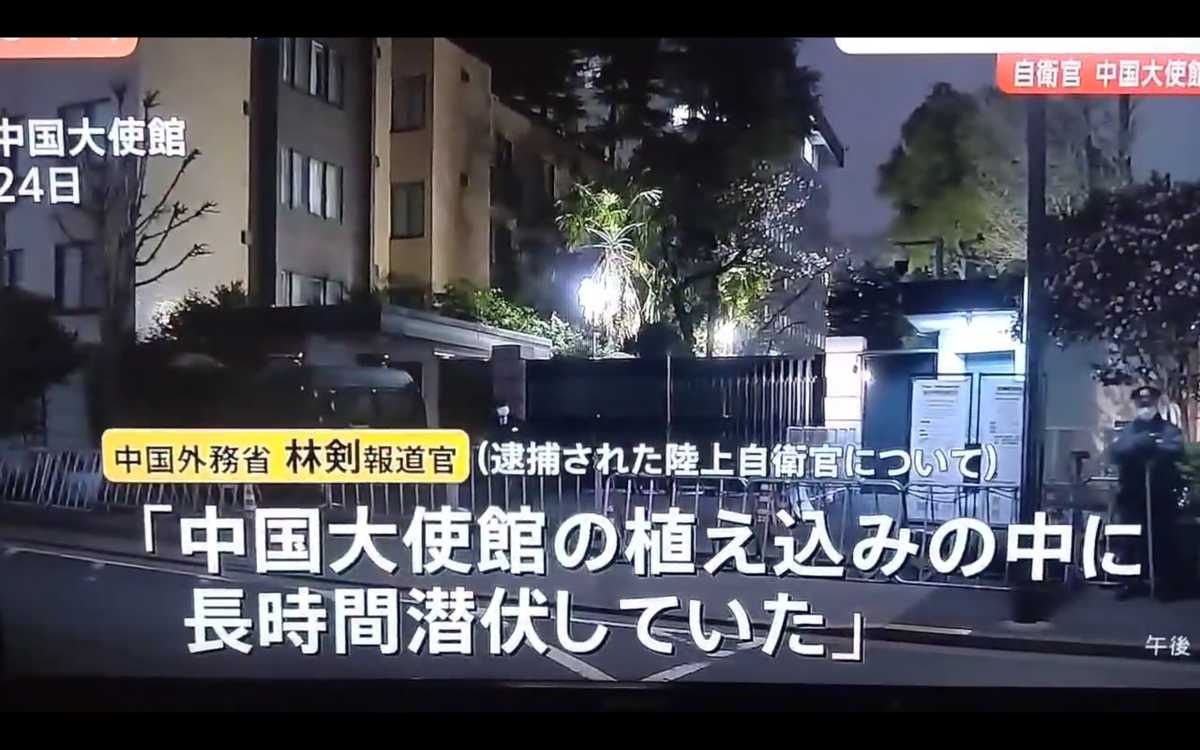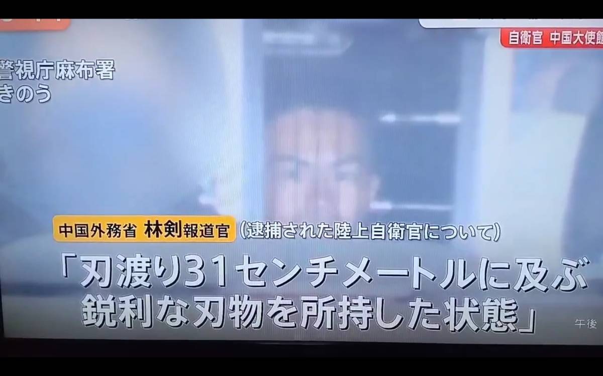 林氏は次のように述べた。ますます多くの事実が明らかになりつつある。不法侵入者は自衛隊3等陸尉であり、大使館の通勤時間を選び、刃渡り31センチの鋭利な刃物を所持して塀を乗り越えて侵入し、長時間にわたり茂みに潜伏していた。われわれは問わずにはいられない。長時間の潜伏は誰を待っていたのか。何をするつもりだったのか。日本側はこれについて、これまで何ら説明していない。