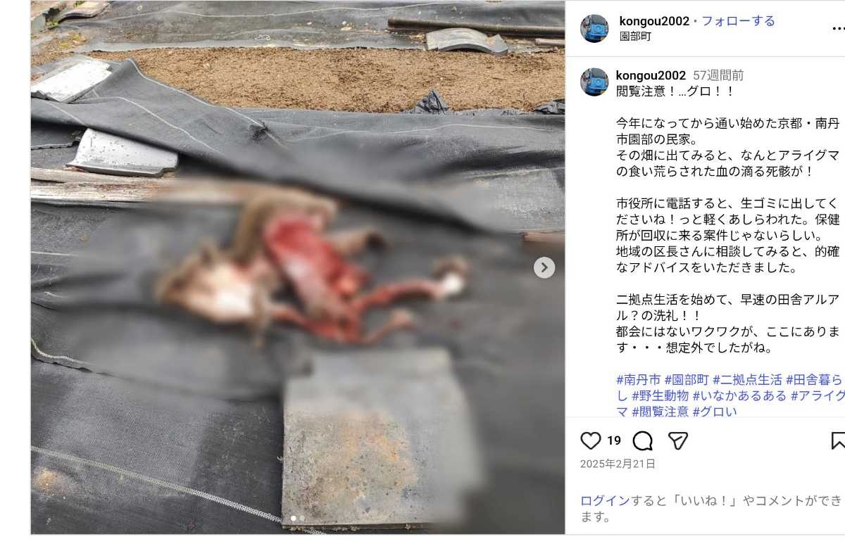 アライグマが野生動物に食われた死骸って民家の人慣れてんのかな
