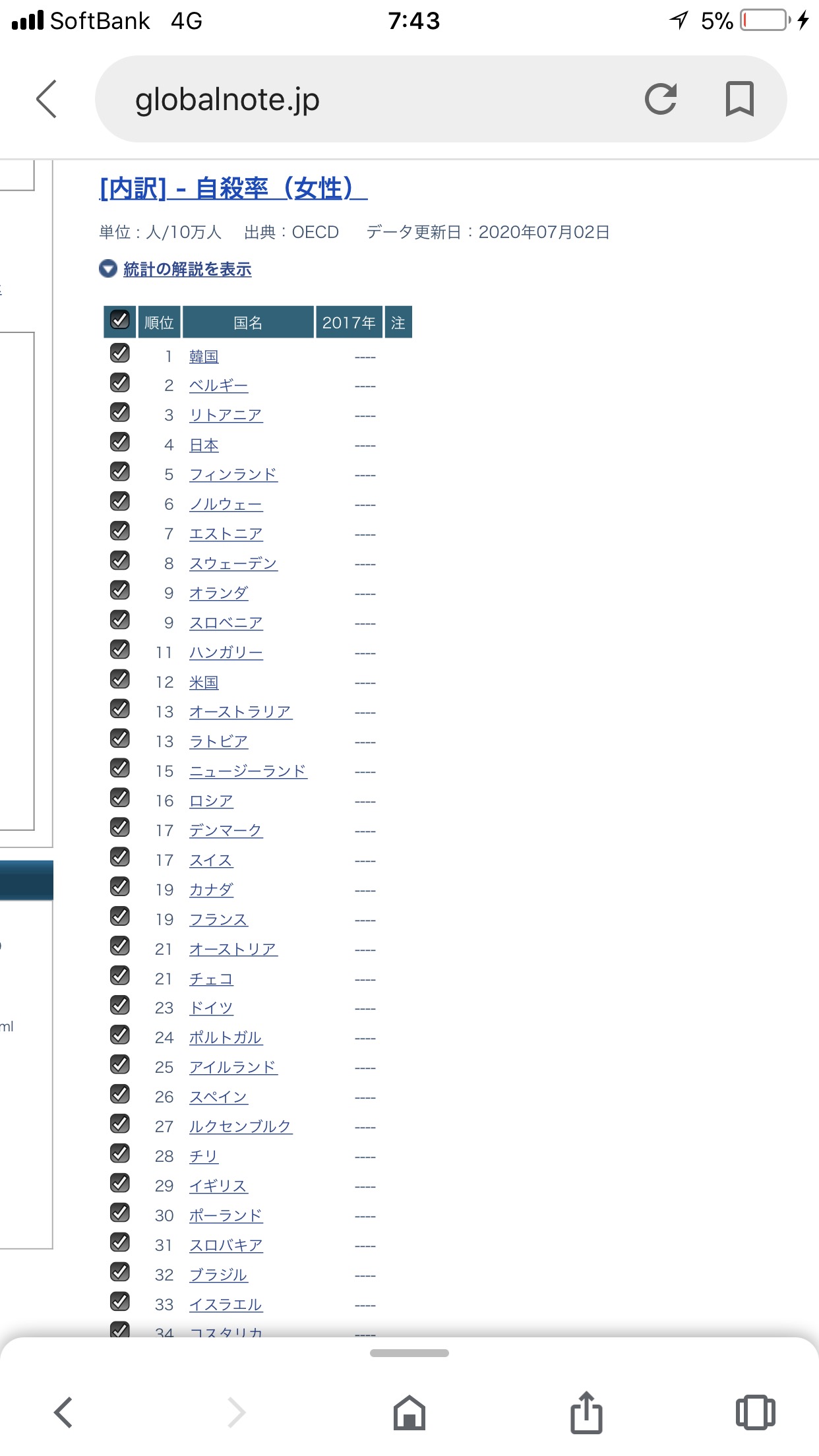日本の女は一時期二位だったのに下がったな