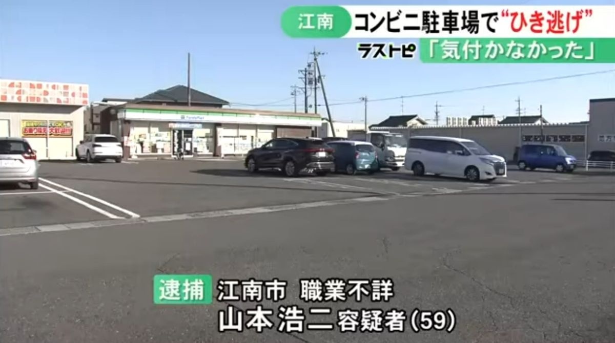 コンビニの駐車場から車を出そうとして別の車にぶつけ相手にケガさせて逃走か 59歳男を逮捕「当たったことに気づかず」|FNNプライムオンライン先月19日、愛知県江南市のコンビニ駐車場でひき逃げをした疑いで、59歳の男が逮捕されました。 逮捕された江南市の職業不詳・山本浩二容疑者(59)は先月19日、ファミリーマート江南高屋店の駐車場から車を出そうとする際、別の車にぶつかって会社員...www.fnn.jp