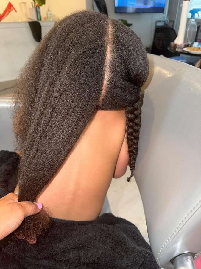 背骨出てるから背中として、子供の髪を三つ編みにしてんだろな。