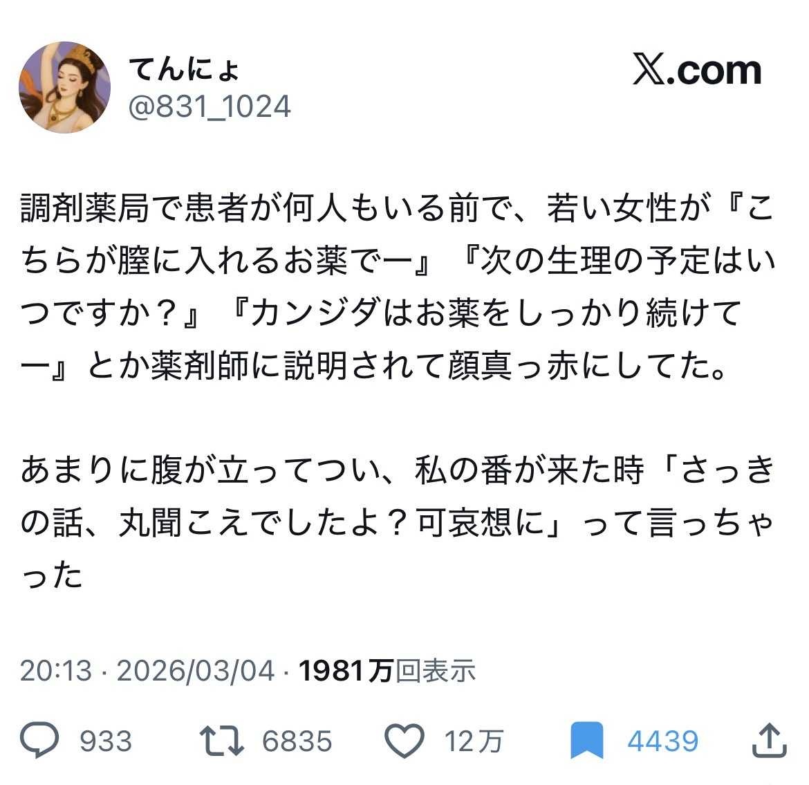 おっ?若い女だな水虫の薬を大声で言って辱めたろ💊ってなるんだろう邪悪