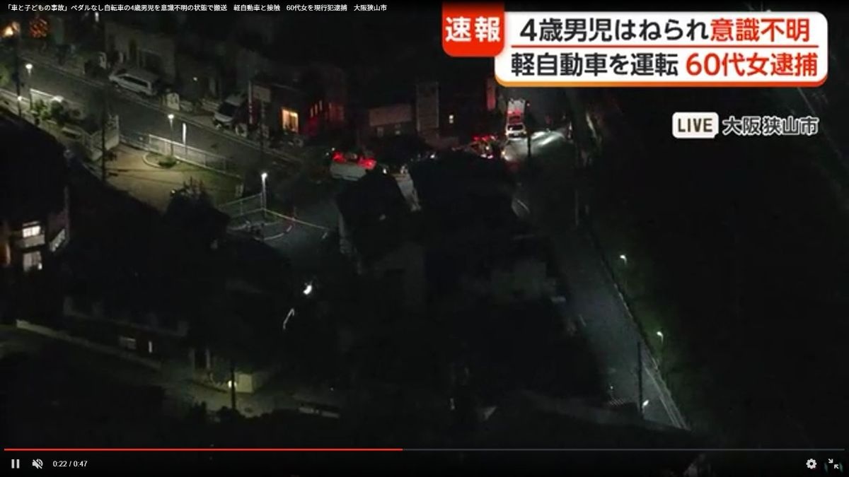 9日夕方、大阪狭山市で軽自動車と男の子が接触する事故があり、男の子は意識不明の状態で病院に搬送されました。