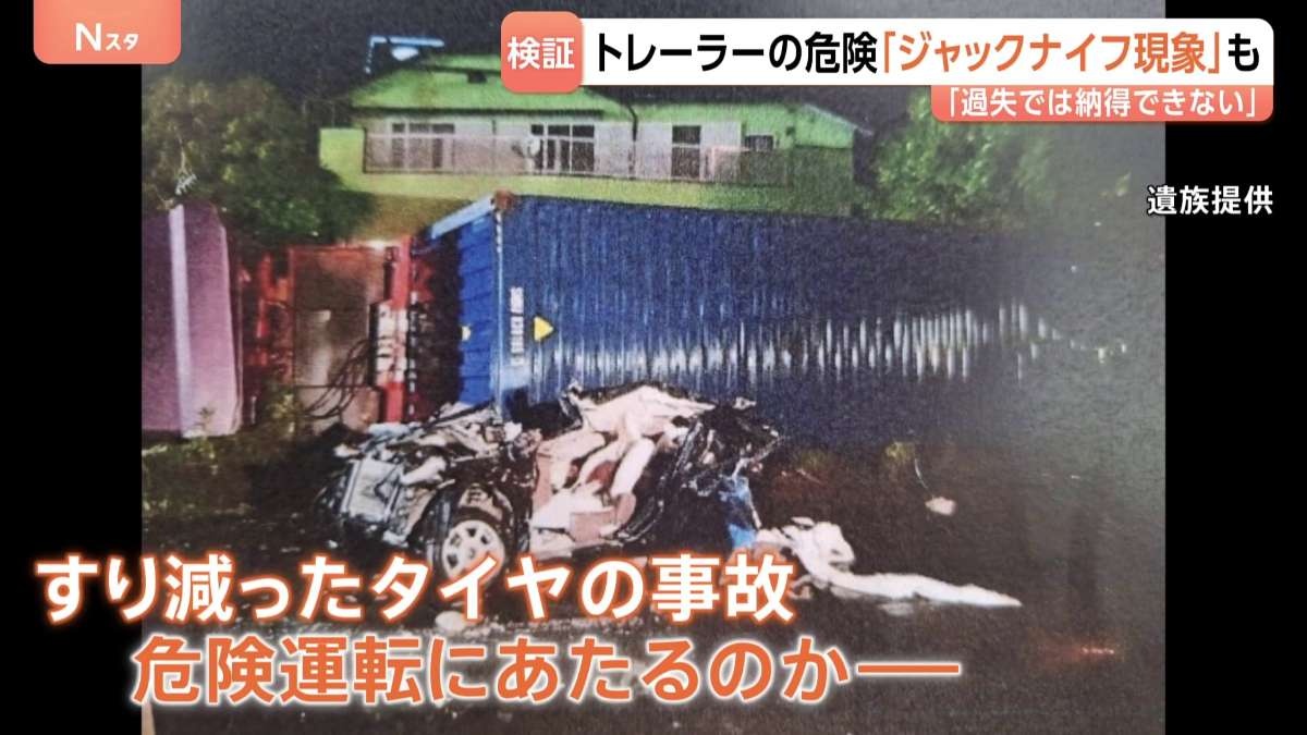 すり減ったタイヤを車に装着するのは違法改造に当たります。「過失で終わるのは納得できない」“危険運転”での起訴求める遺族の訴え すり減ったタイヤで走行のトレーラーで起きた事故で女性死亡