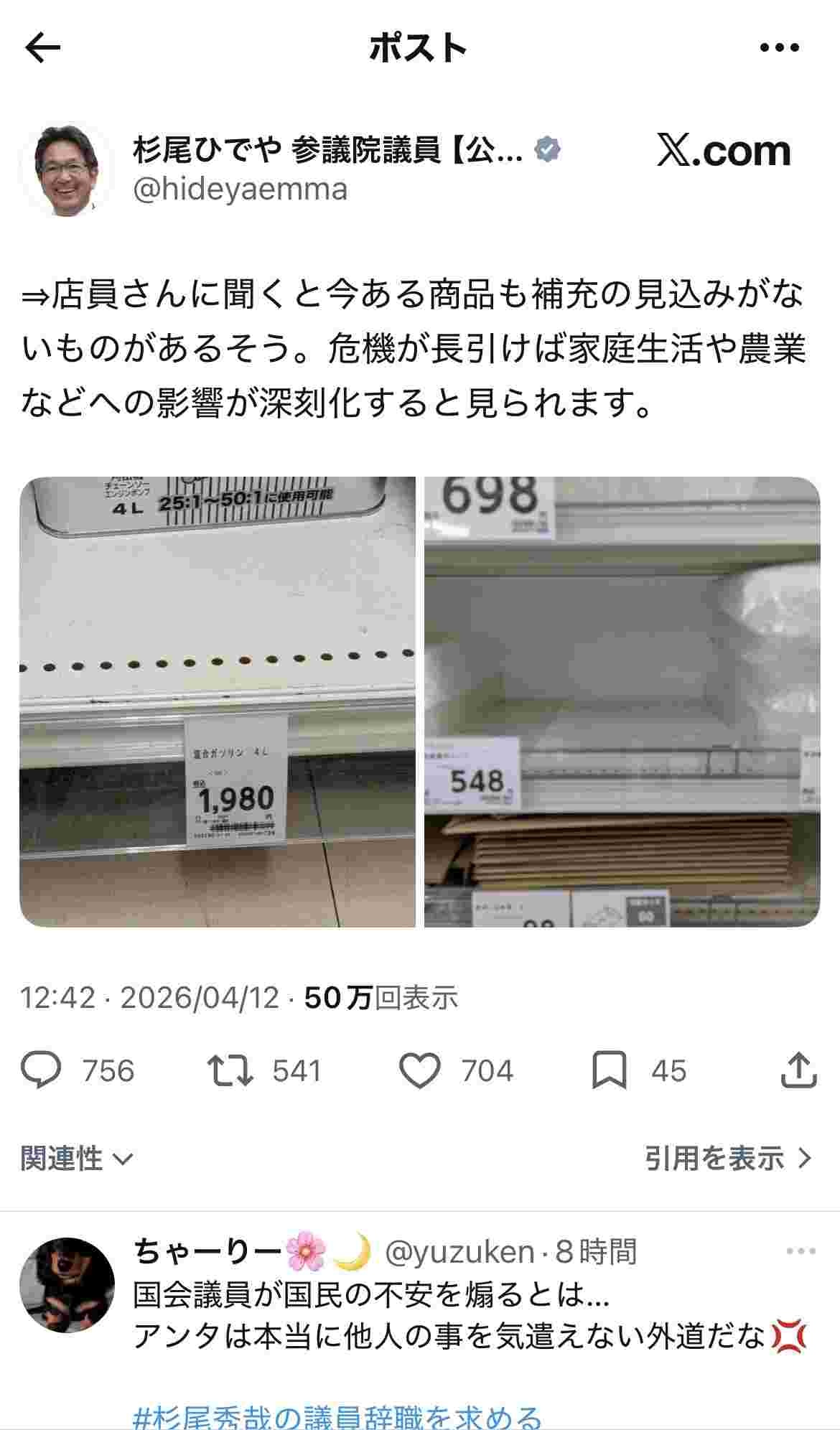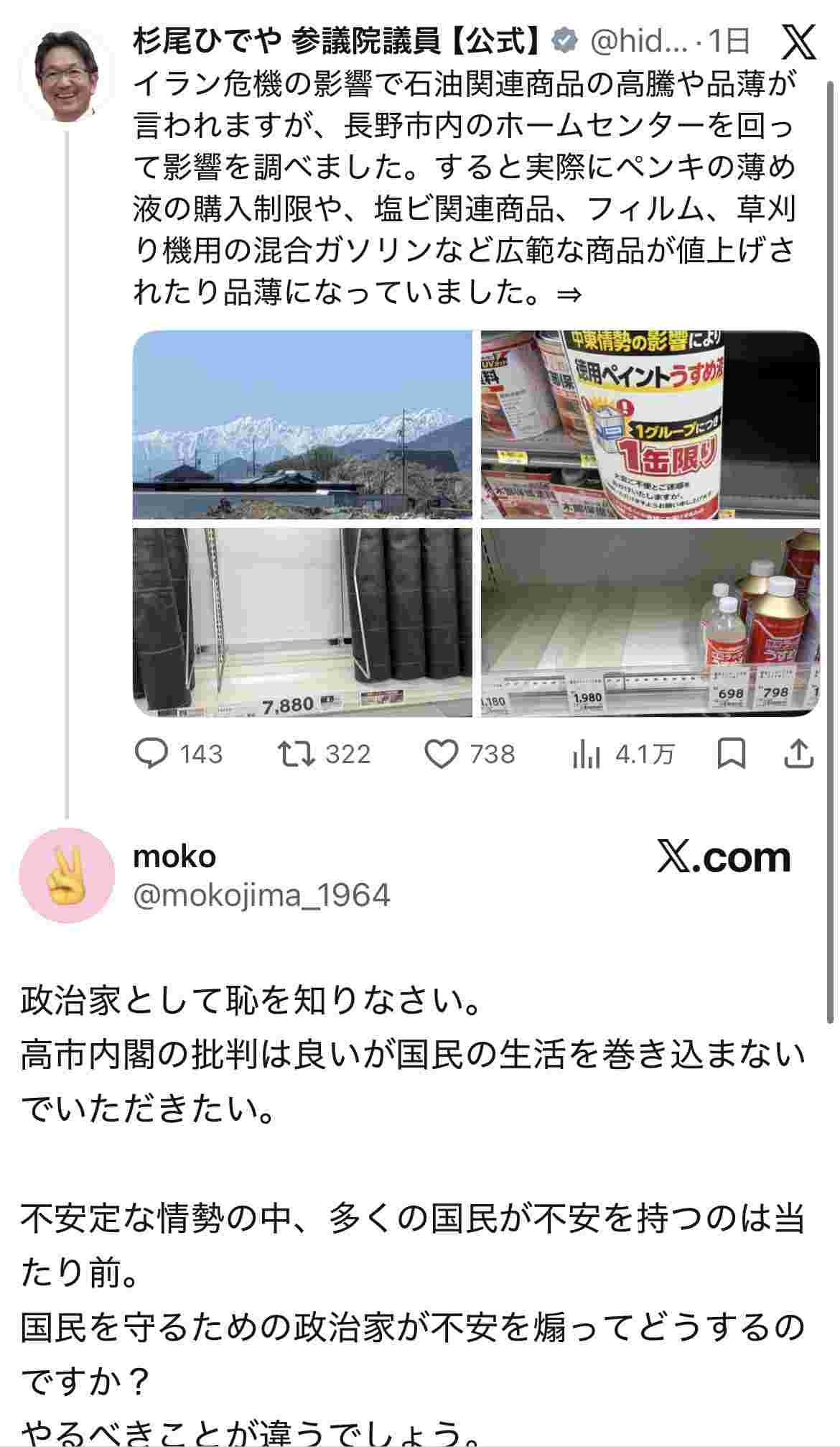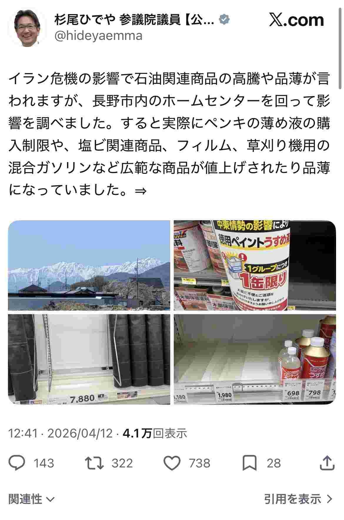 今回のTOTOなどのケースは会社自身が公に発表したものですが、その他の業種でも供給停止や価格急騰が発生しています。NHKの日曜討論で赤沢大臣はAIも使ってネット上の供給不足情報なども把握しているとおっしゃっておられましたので、直接寄せられた事実は政府に伝えるとともに、引き続きポストもしていきます。