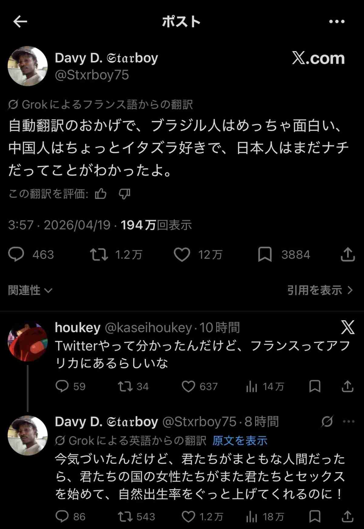 フランス人「Xの自動翻訳でわかったこと。日本人はまだナチス」→12万いいね。世界が同意し日本人発狂