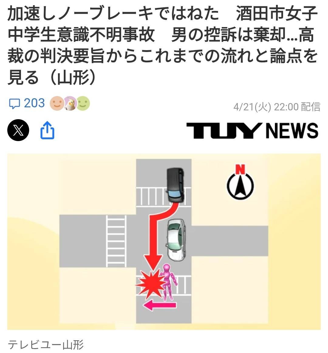 加速しノーブレーキではねた 酒田市女子中学生意識不明事故 男の控訴は棄却…高裁の判決要旨からこれまでの流れと論点を見る(山形)