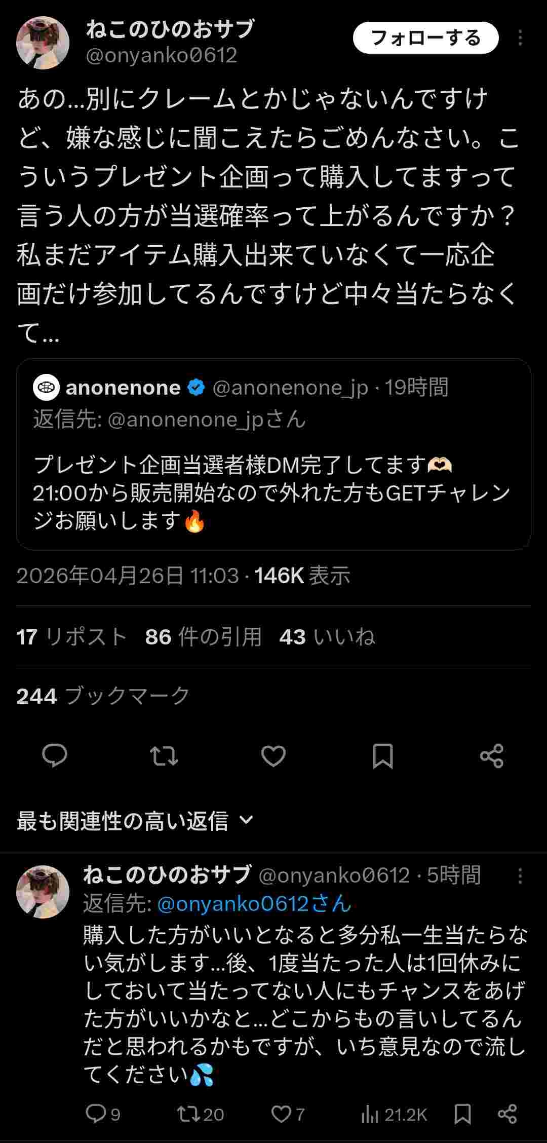 Xのプレゼントはそれなりにフォロワーがいて当選したらガンガン宣伝してくれそうなやつしか当たらないよね