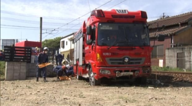 男は、消防車に乗って逃げ、北へおよそ10キロの武豊町の線路沿いで事故を起こしました。