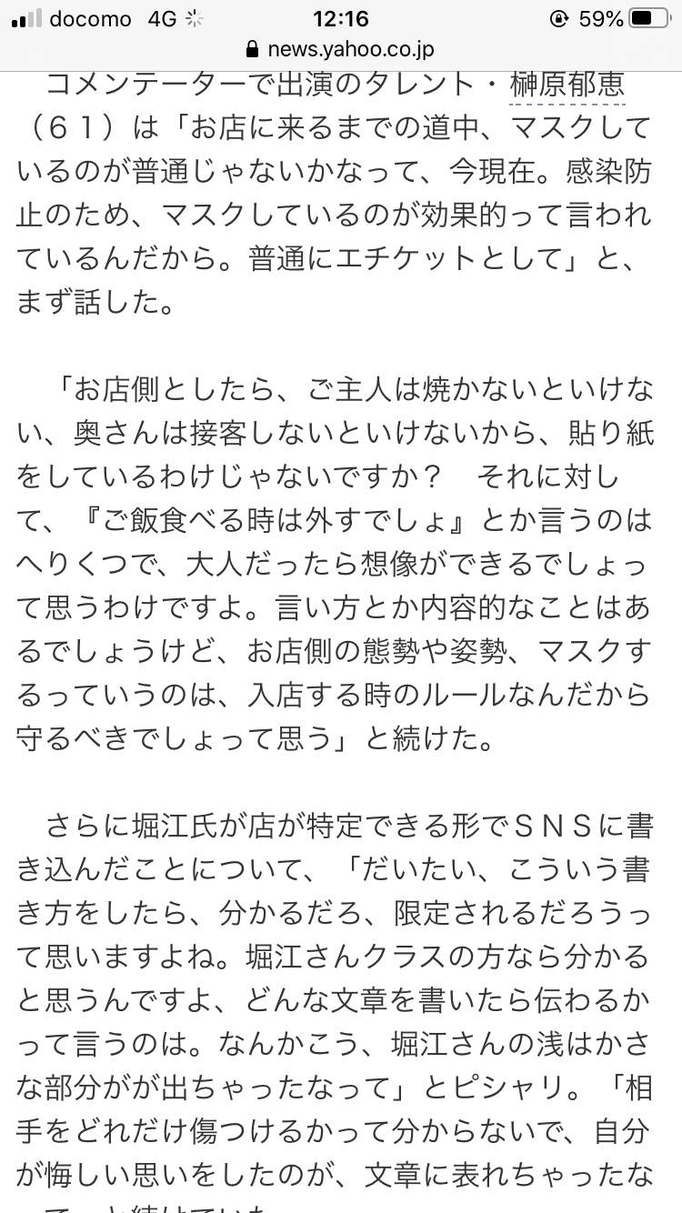 堀江氏がマスク不着用の同行者が入店しようとしたところ、マスク着用を要請した店側とトラブルに。堀江氏がSNSに「マジでやばいコロナ脳。狂ってる」とつづった後、同店にいたずら電話などが殺到し、店は休業に追い込まれた。