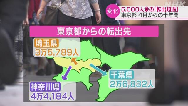 ことし4月から半年間の東京都の人口の動きは、転出が転入を5000人余り上回る「転出超過」となりました。