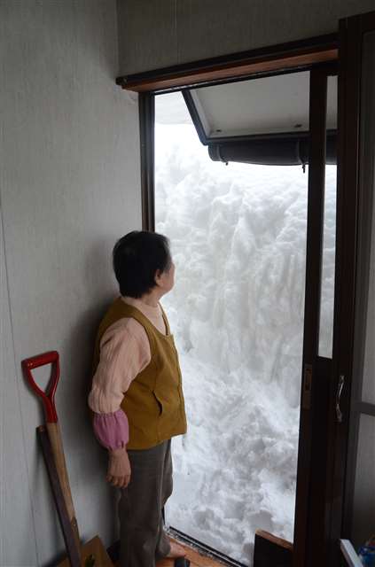 月1回の通院や、日頃の買い物には自分で車を運転して出掛ける。「車が出入りできるスペースを確保しないと、何もできない。そのためには除雪するしかない」。積み上げられた雪山は、既に2階に迫り、一部が崩れて道路にはみ出すこともある。