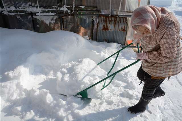 屋根の雪下ろしは、共助組織「岩崎生活サポーターの会」に頼むが、自宅前の除雪は同居する次女と2人で行っている。「甘えてばかりいられない。できることはやらないと」