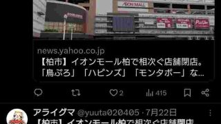 嫌儲 【緊急】「イオンモール柏」、とんでもない事になり炎上中(お前らの想像の10000000倍やぱい)