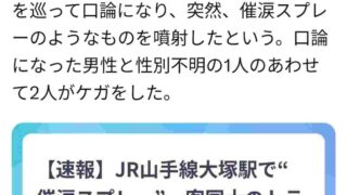 VIP 山手線で女が催涙スプレーを噴射して逮捕される…女が優先席に先に座っていた人を押しのけて強奪し注意された事でトラブルに