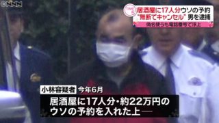 ニュー速 居酒屋の予約キャンセル 17人分22万円の損害 男を逮捕(画像あり)