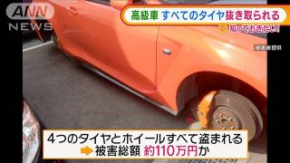 駐車場に停めてあったレクサス、ホイールとタイヤ全部盗まれる 被害額は110万円