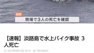 嫌儲 水上バイク事故で男女3人が死亡 兵庫・淡路市