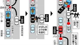 嫌儲 警察が「犯罪に使われた車を押収して移動中」、謎の車3台に襲われ車の中の証拠品を奪われる。 大阪