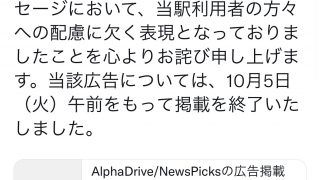 なんJ 品川駅のあの広告、速攻で掲載終了