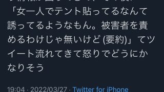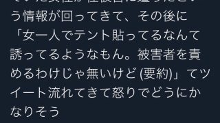 女性「キャンプしてたら性被害に遭った」Twitter民「女がソロキャンとか誘ってるだろ」→大激論に