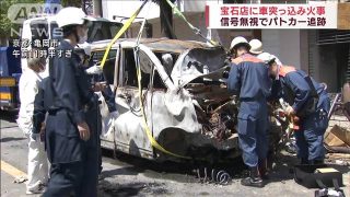 嫌儲 【悲惨】宝石店さん、パトカーから逃走中の18歳ガキの車にダイナミック入店され出火し全焼してしまう(´ ;ω;`) 被害総額不明