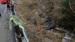 ニュー速 【画像有】陸自で死亡事故。大型トラックが河に転落し隊員1名死亡。速度超過