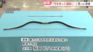 嫌儲 「スピードを出すなという警告だった」 車を運転していた20代女性に弓を引いて矢を向けた会社員の稲冨起八72歳が逮捕される 飯塚市