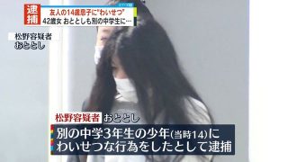 嫌儲 14歳男子中学生に“わいせつ”42歳女逮捕 おととしも別の男子中学生に…