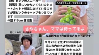 なんJ 松戸の行方不明女児の母「さや、ママは待ってるよ」