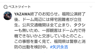 ニュー速 矢沢台風ライブ、無事終了→交通機関が全て止まっているためpaypayドームで一夜明かすことにw