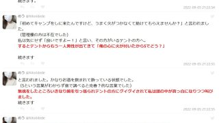 なんG 女性キャンパーさん、ソロキャンプ中に性被害に合う
