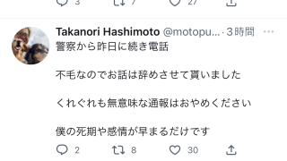 橋本崇載さん再び発狂中、警察にも怒られてる模様😰