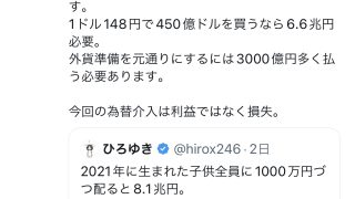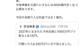 ひろゆき「円買い介入したので6.3兆円が消えた」←これの言い訳