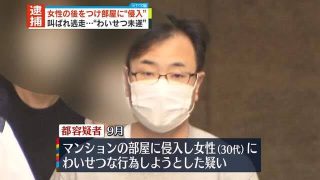 全くバレずに女性の後を尾行し、そのまま一緒に女性の自宅に入り込む事に成功。都広光(52歳)、逮捕