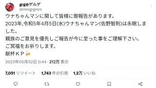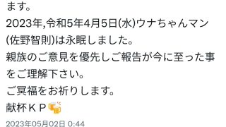 なんJ ウナちゃんマン亡くなる🙏Twitterトレンド1位