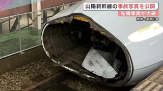 ニュー速 画像あり。時速300キロの新幹線にひかれ死亡。先頭部が大破