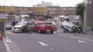 嫌儲 【画像】88歳男の車が交差点で対向車線の車列に突っ込み4台と次々激突 これどんだけスピード出してたんだよ