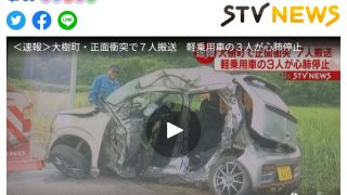 ニュー速 カーレース(笑)の観戦に向かっていた車カスのアルトワークスが正面衝突し3人心配停止