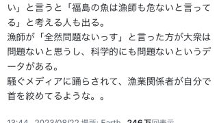 嫌儲 ひろゆき「処理水って安全だって言うデータがあるんですけど、騒いでるバカに踊らされるのやめた方がいいすよ」