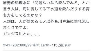 嫌儲 【論破】ひろゆき氏「処理水を「問題ないなら飲んでみろ」という人は、海に流してる下水を飲むの?」